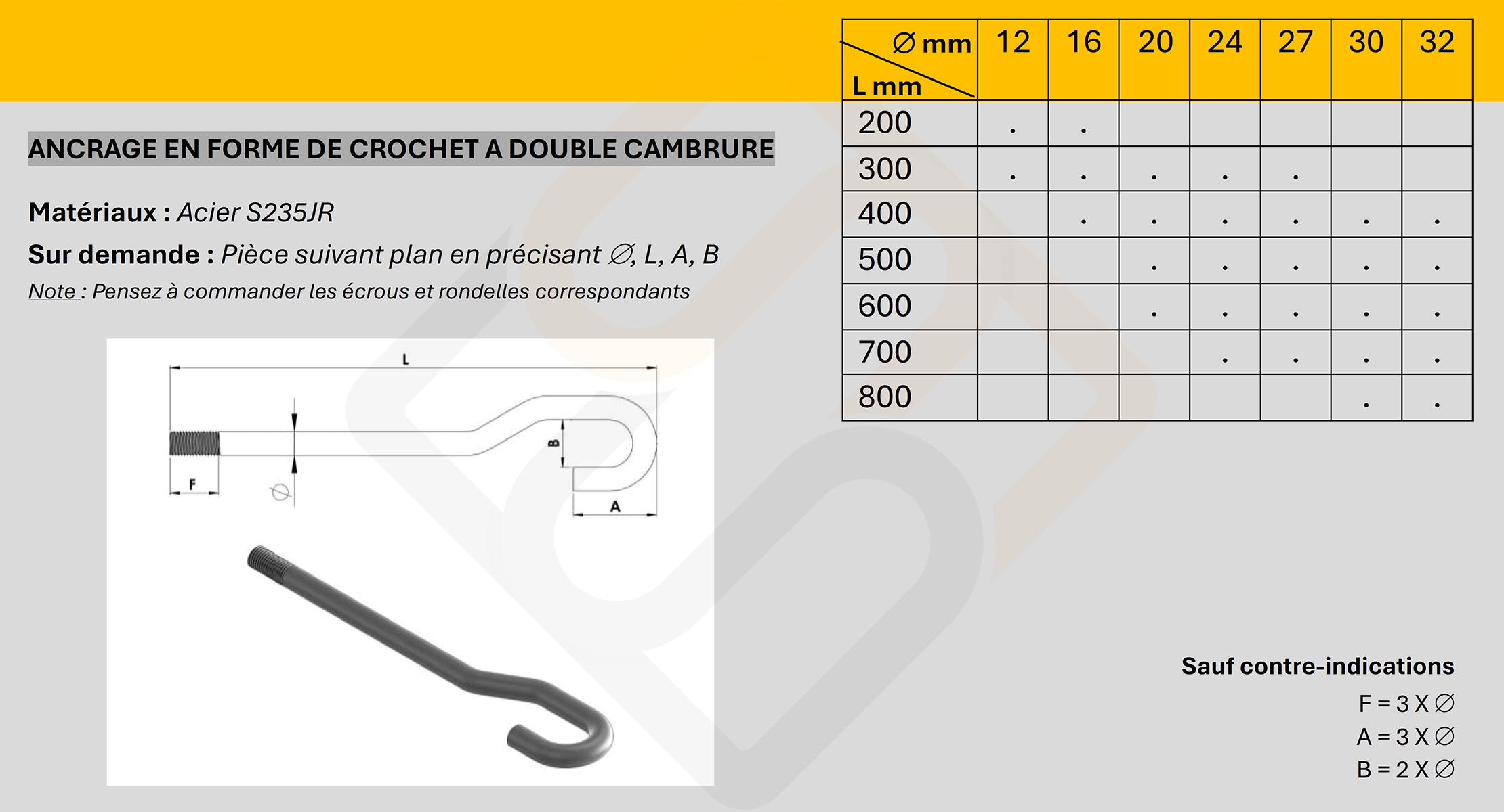 Parametre d' Ancrage en forme de crochet à double cambrure